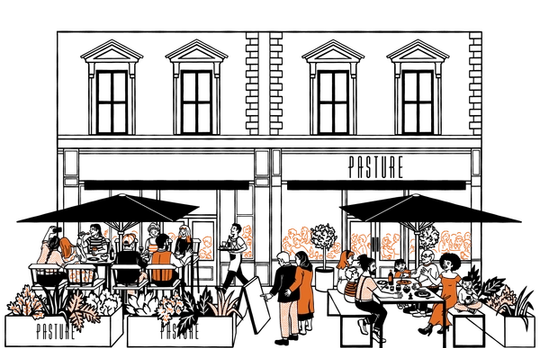 Nestled in the heart of Cardiff, in the shadows of the world famous Cardiff Castle, the restaurant is set for theater. Pasture Cardiff is a lively and energetic restaurant, with late night entertainment every weekend from our resident DJ. Our busy open kitchen showcases charcoal grills and dry aging cabinets displaying whole cuts of beef, bringing you the full Fire, Meat, Music experience. We select our beef from farms in Wales & the South West, all which have been raised on pasture. We’re proud to showcase local Welsh produce and have built great relationships with farmers and producers with more to come in the future. Our restaurant boasts a beautiful terrace in the bustling city center, perfect for alfresco dining and cocktails whilst you watch the world go by. Croeso I Pasture For Christmas inquiries, please contact the Christmas Team cardiff-christmas@pasturerestaurant.com